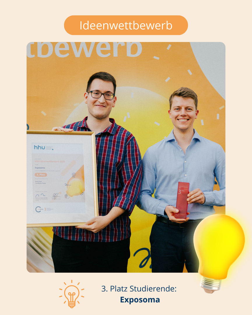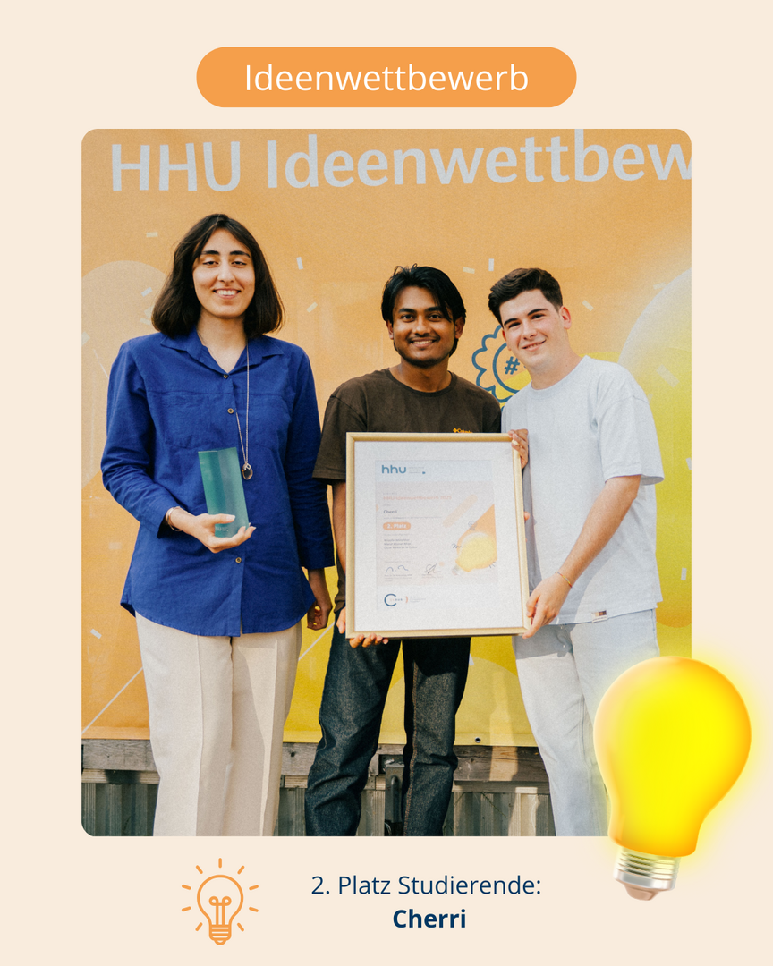 First place, endowed with 1,000 euros, went to "InsuPrint", second place with 600 euros to "Cherri" and third place with 300 euros to "Exposoma". The money can be earmarked for startup and project-related expenses.
