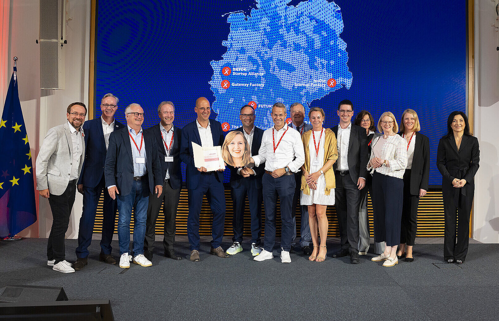The Federal Minister for Economic Affairs and Energy Katherina Reiche presented the Gateway Factory delegation with the funding certificate today in Berlin. From left:
