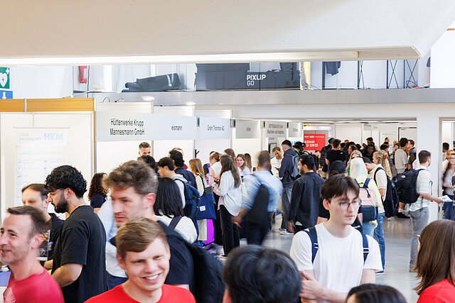 At the Campus Fair, students and graduates from Gelsenkirchen and other nearby university cities can meet regional, national and international companies. In 2025, companies presented their recruitment and careers offers, internships and practical dissertation/thesis opportunities to around 2,500 students at more than 80 booths. HR managers are on hand to answer questions about starting your career. The event will be rounded out by interesting presentations and an accompanying programme.