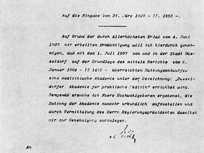 1907  |  			Die „Gelsenkirchener Akademie für praktische Medizin“ wird nach langen und hartnäckigen Bemühungen aus Gelsenkirchen mit einem Allerhöchsten Erlass vom 4. Juni 1907 errichtet.  |
