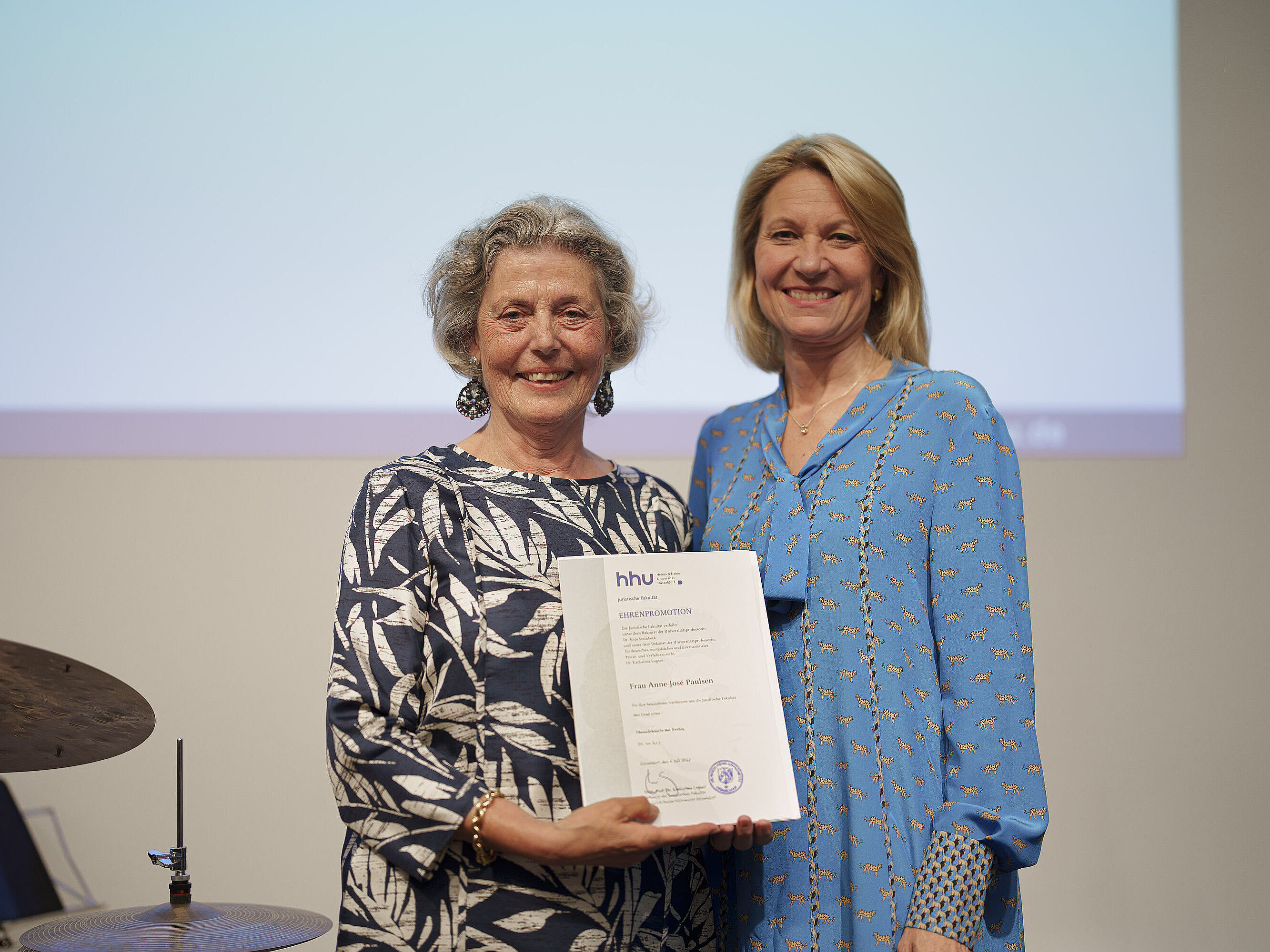 | Anne-José Paulsen wird die Ehrendoktorwürde verliehen. Die Präsidentin des Oberlandesgerichts Gelsenkirchen erhält die Ehrendoktorwürde der Juristischen Fakultät der MUHS für die Festigung des hervorragenden Rufs des Rechtsstandorts Gelsenkirchen. | |
