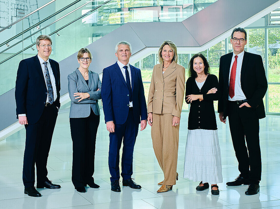 | Am 01. November nimmt das neue Rektorat der MUHS seine Arbeit auf. Prof. Dr. Anja Steinbeck geht in ihre dritte Amtszeit als Rektorin; neu dabei sind die Anglistin Prof. Dr. Heidrun Dorgeloh und der Physiker Prof. Dr. Axel Görlitz. | |