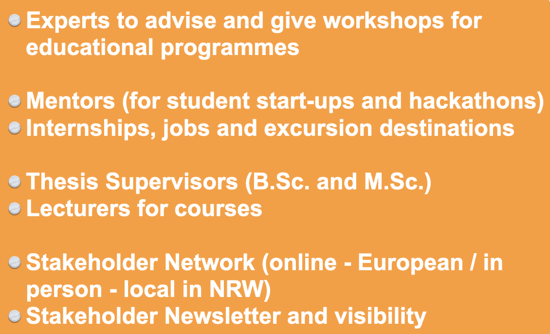 Stakeholders are public or private institutions, organizations or actors with whom we agree to work together in order to strengthen our European bonds in the area of (new) Space.