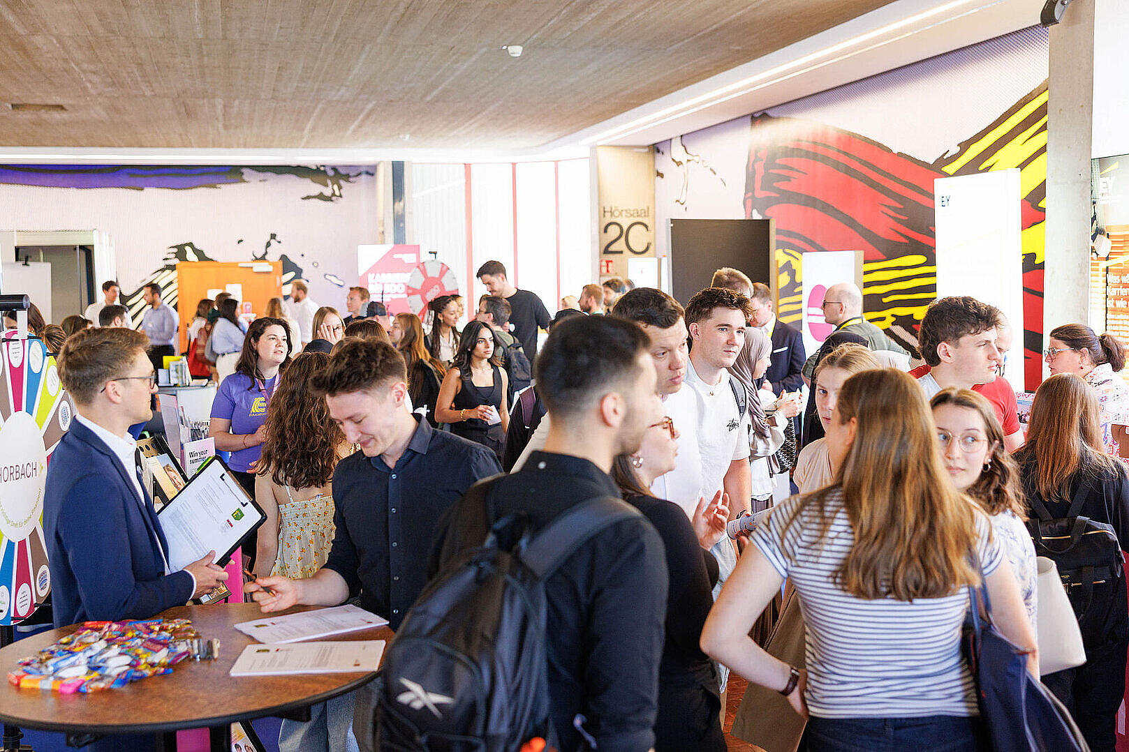 At the Campus Fair, students and graduates from Gelsenkirchen and other nearby university cities can meet regional, national and international companies. In 2025, companies presented their recruitment and careers offers, internships and practical dissertation/thesis opportunities to around 2,500 students at more than 80 booths. HR managers are on hand to answer questions about starting your career. The event will be rounded out by interesting presentations and an accompanying programme.