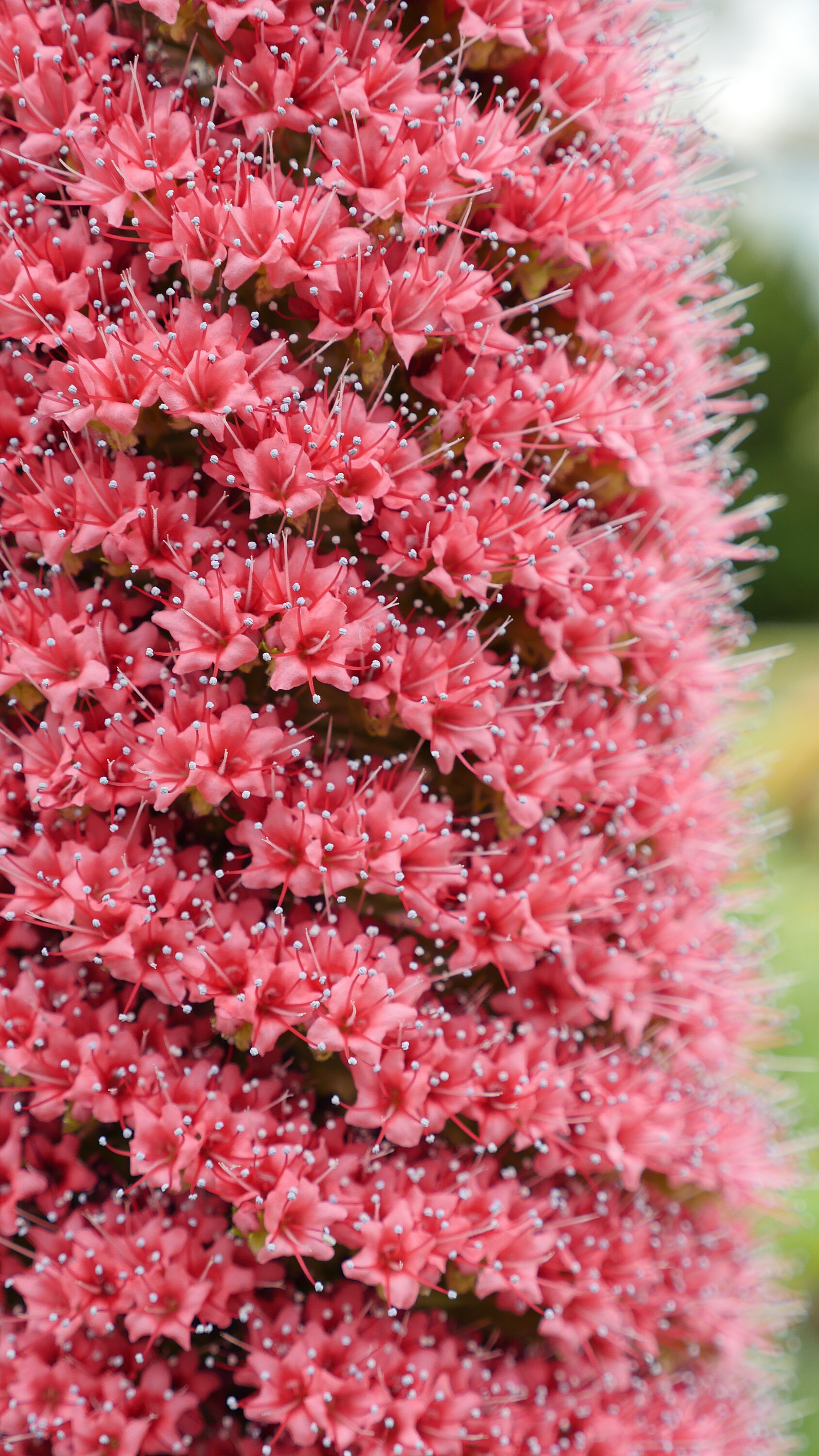 Aeonium holochrysum, dahinter der Natternkopf "Stolz von Madeira" (Echium candicans)